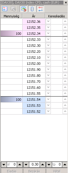 AMP-nél a határidős piac összes limit megbízását mutatják.